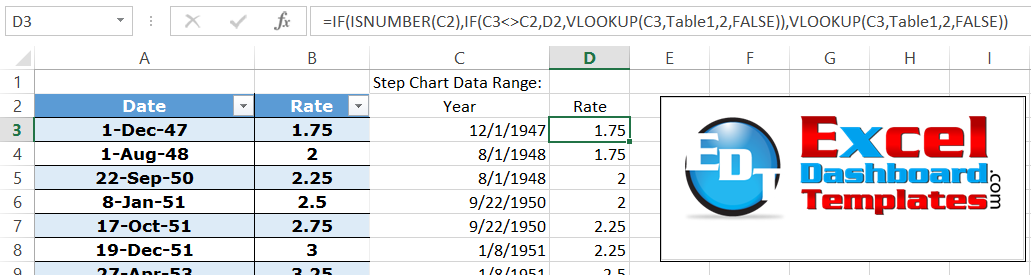 Step Chart Small Function Cell D3 | Excel Dashboard Templates